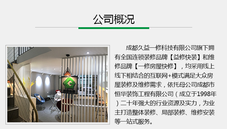 一修房屋快修-連鎖直營模式,益修快裝,專業(yè)裝修設(shè)計(jì)公司,集舊房二手房裝修、局部整體翻新、廚房衛(wèi)生間改造、房屋維修、客廳臥室、墻面粉刷、防水補(bǔ)漏、水管維修、電路維修、門窗維修、家具維修、家電維修、打孔安裝等服務(wù);給北京、天津、上海、廣州、深圳、成都、重慶、杭州、南京、福州、武漢、長沙、西安等城市提供上門服務(wù)!裝修公司哪家好?