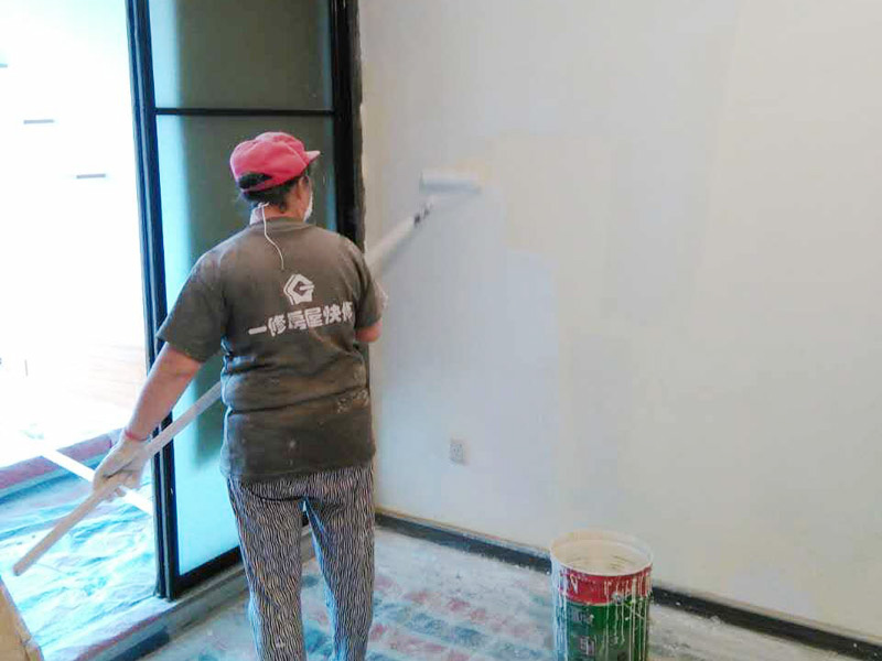 涂刷底漆:底漆一定要刷勻,確保墻面每個(gè)地方都刷到,如果墻面吃漆量較大,底漆好適量的多加一點(diǎn)水,以確保能夠涂刷均勻。